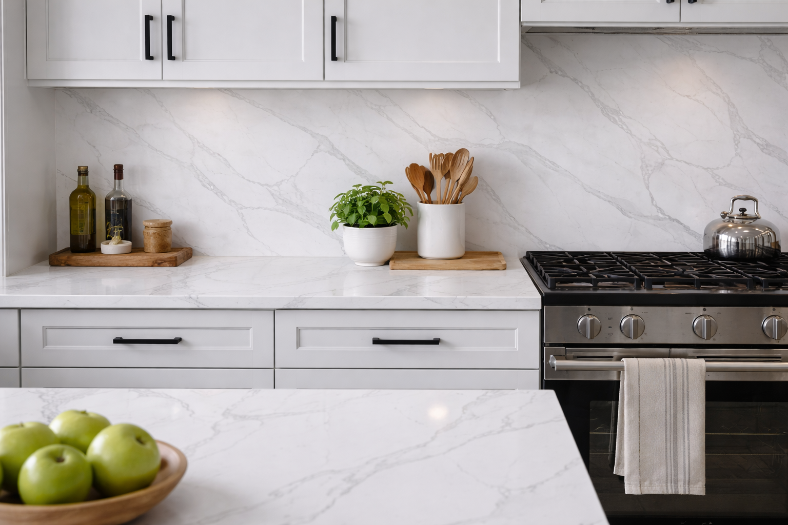 Arya Pearl features a luminous white background accented with soft grey veining that flows gently across the surface. The delicate movement of the veins creates subtle visual depth while preserving a clean and refined aesthetic. With its polished finish, durable 3cm thickness, and spacious 137x79 slab size, Arya Pearl delivers timeless elegance and versatility, making it ideal for countertops, kitchen islands, and sophisticated interior surfaces.