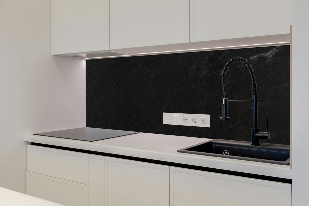 A deep black granite with graceful white veining that flows like mist across a midnight sky. Available in both polished and leather finishes, it offers timeless sophistication and versatile strength for modern and classic interiors alike.