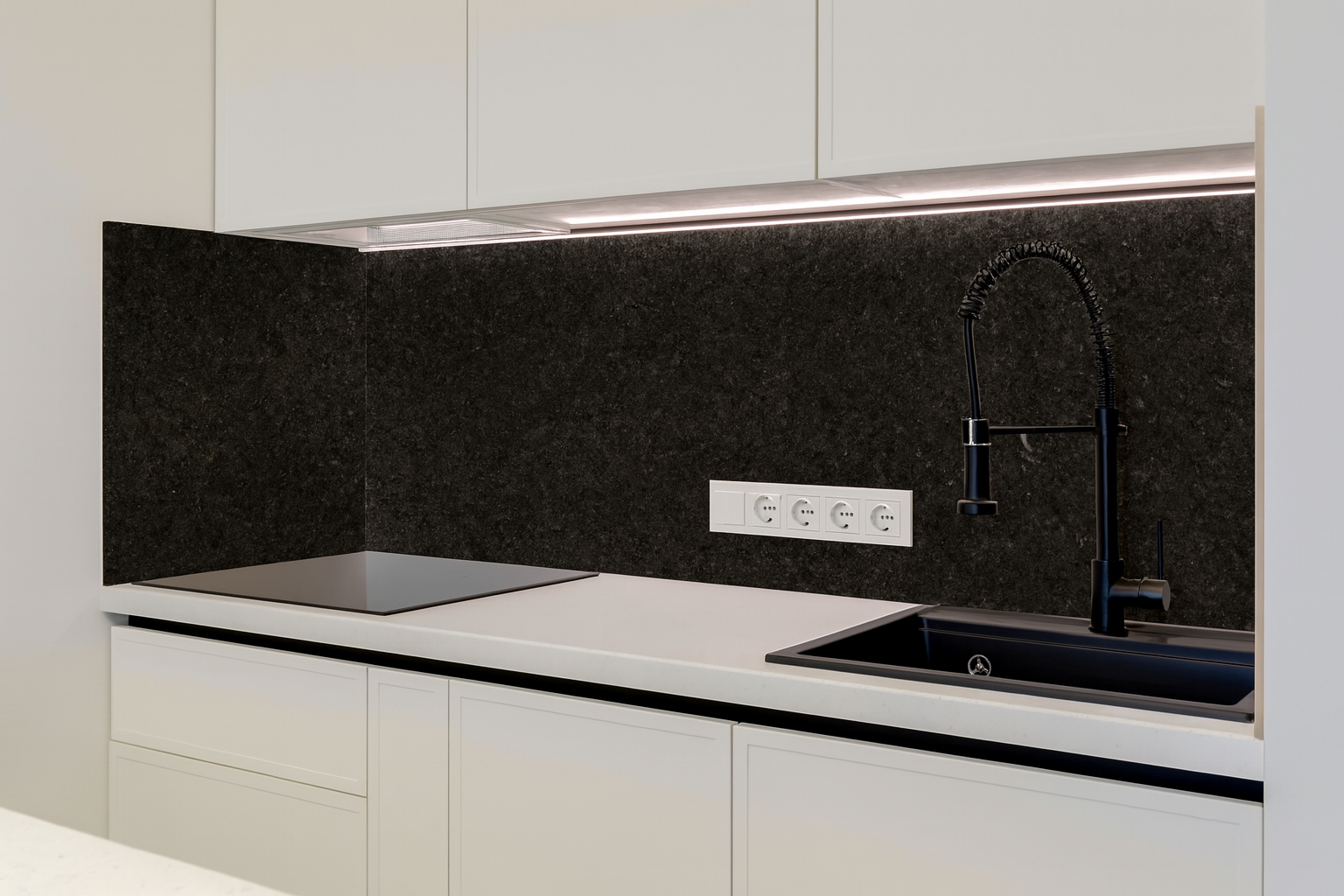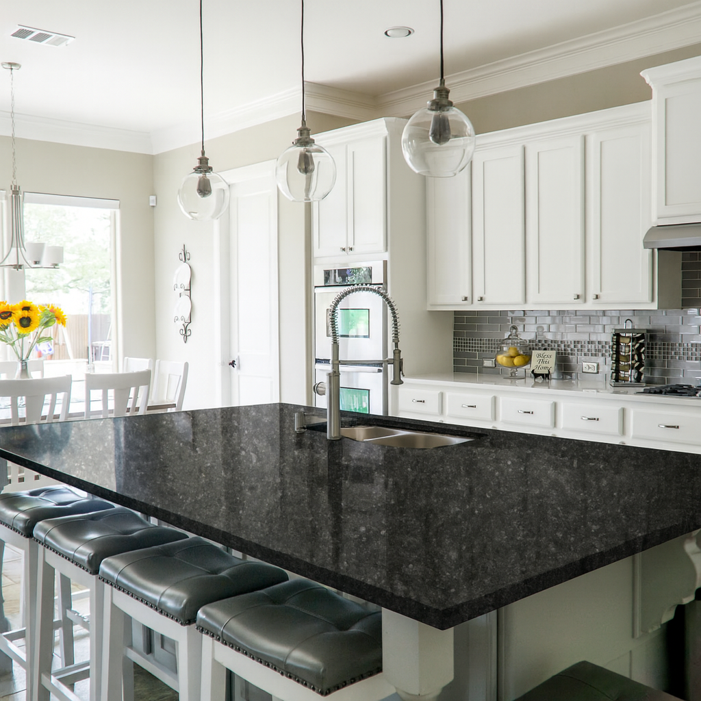 A rich, dark granite offering a smooth monochromatic look with subtle silver reflections—ideal for modern designs seeking a cool, timeless finish.