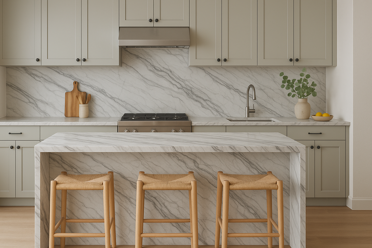 Infinity White Quartzite radiates quiet sophistication with its flowing grey veining and luminous surface. Available in both polished and leather finishes and offered in 2CM and 3CM thicknesses, this marble-style quartzite combines the strength of nature with an ethereal aesthetic. Its cool tones and layered patterns create a sense of depth and movement, making it ideal for tranquil, contemporary spaces that embrace the beauty of simplicity.