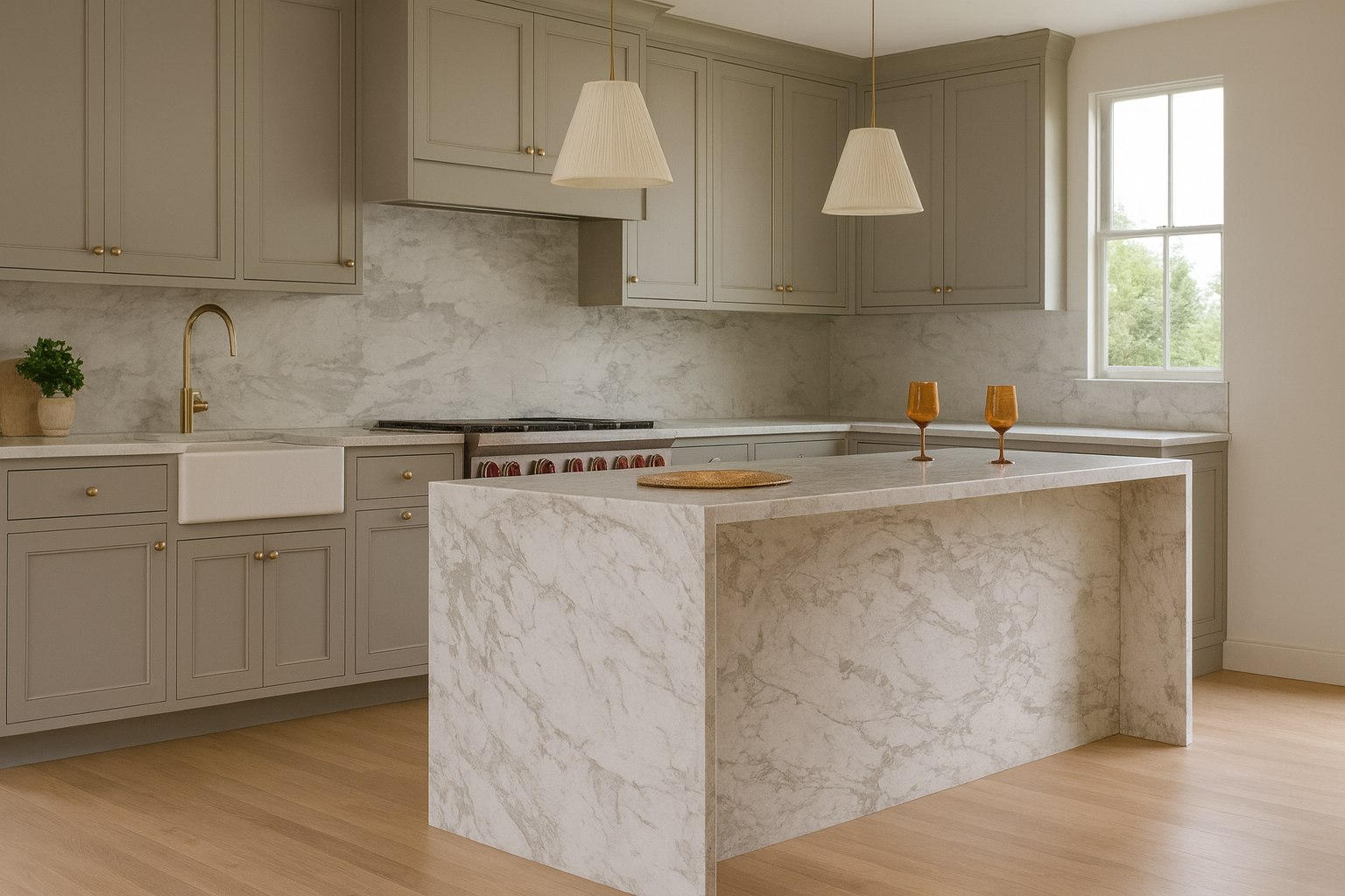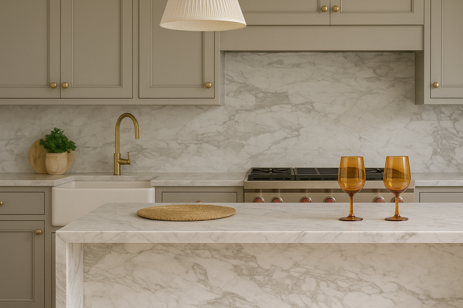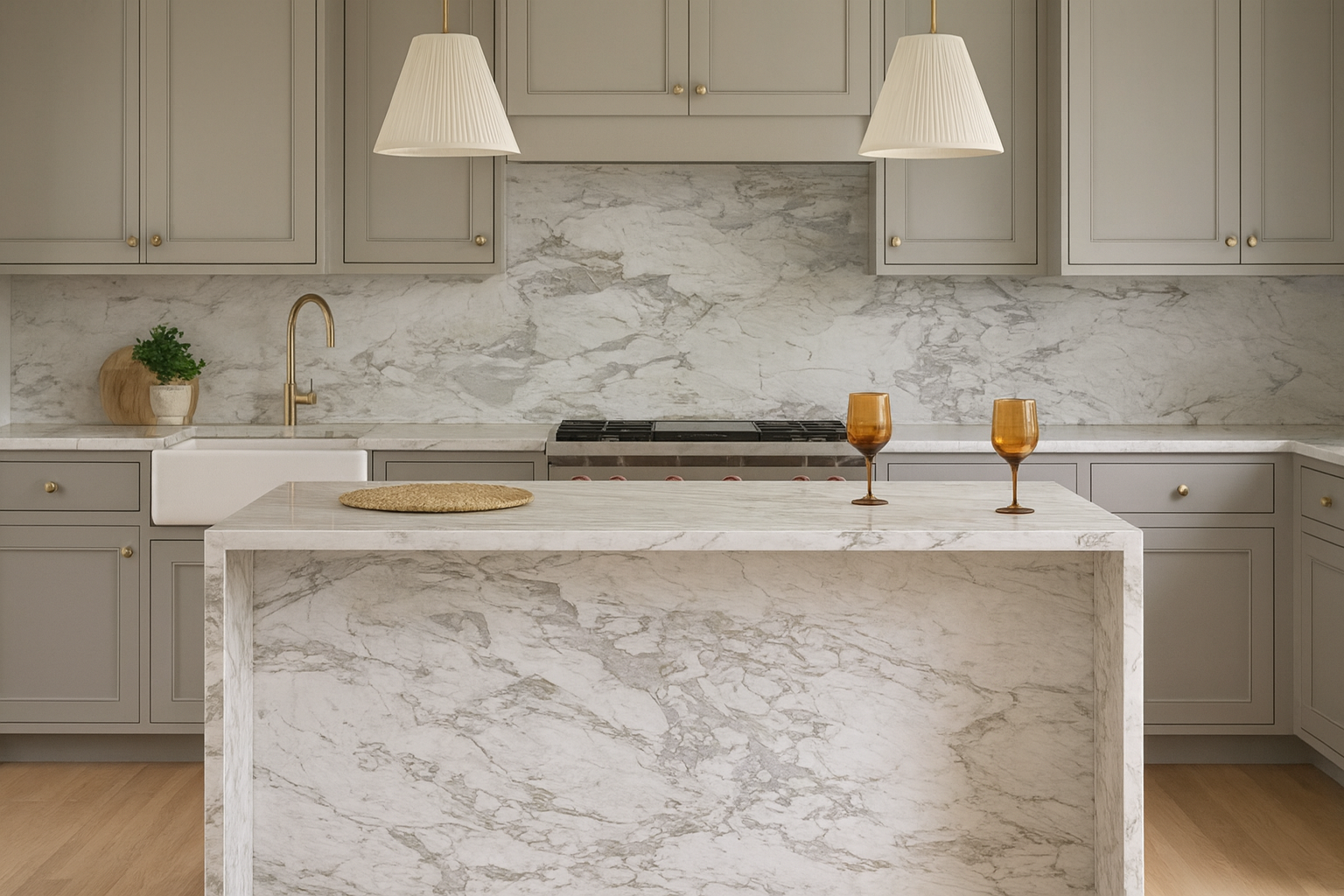 Milano is a luminous dolomite that captures the harmony of white marble accented by delicate veins of grey and gold. Offered in both polished and honed finishes at 3CM thickness, it blends warmth and refinement in perfect measure. Its soft luminosity and elegant movement bring a touch of Italian artistry to kitchens, bathrooms, and statement interiors that seek a balance between luxury and serenity.