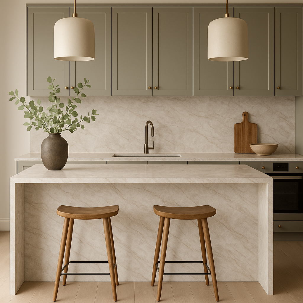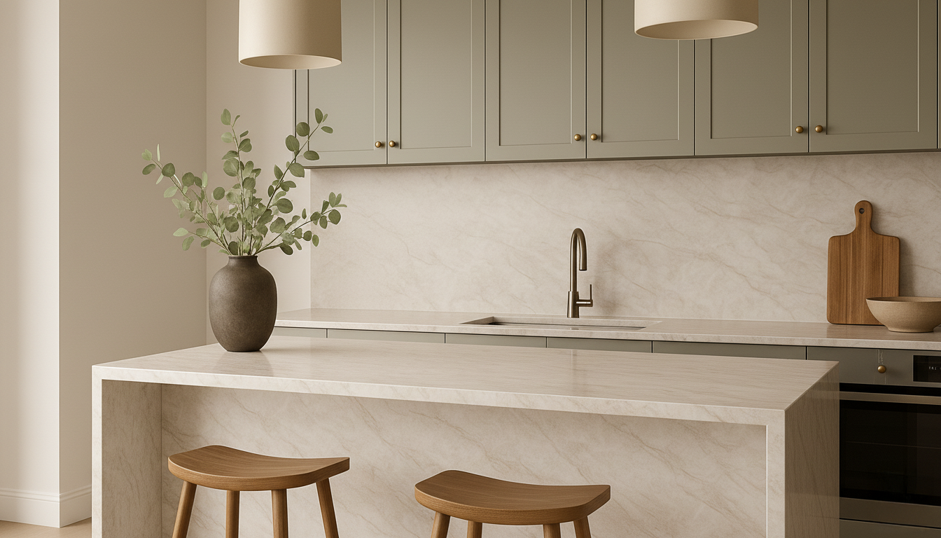 Taj Mahal Quartzite radiates soft luxury through its creamy background and gentle golden veining. Available in both polished and leather finishes with 2CM and 3CM thicknesses, this marble-style quartzite blends resilience with sophistication. Its warm tones and fluid patterns bring a sense of natural harmony, making it a stunning choice for interiors that seek understated opulence — from classic kitchens to serene spa retreats.