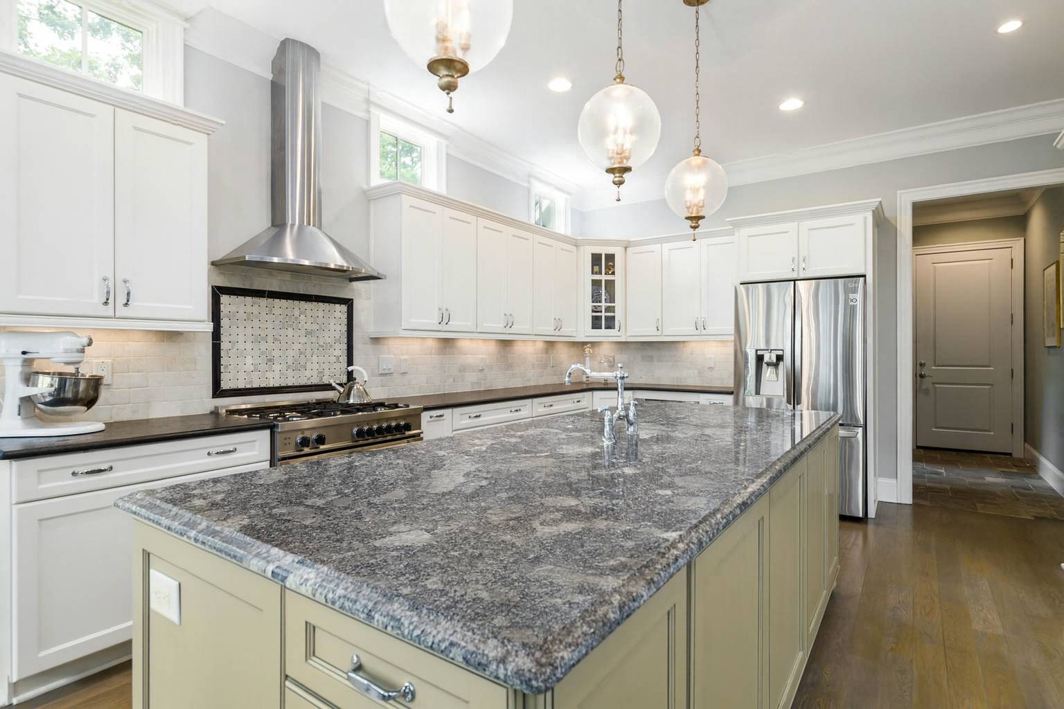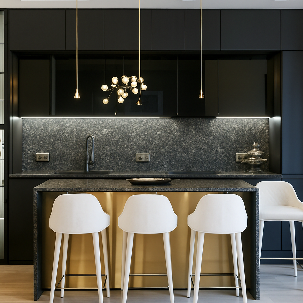 A sleek grey granite accented with deep black mineral tones, offering a refined monochromatic appearance suited for both contemporary and classic interiors.