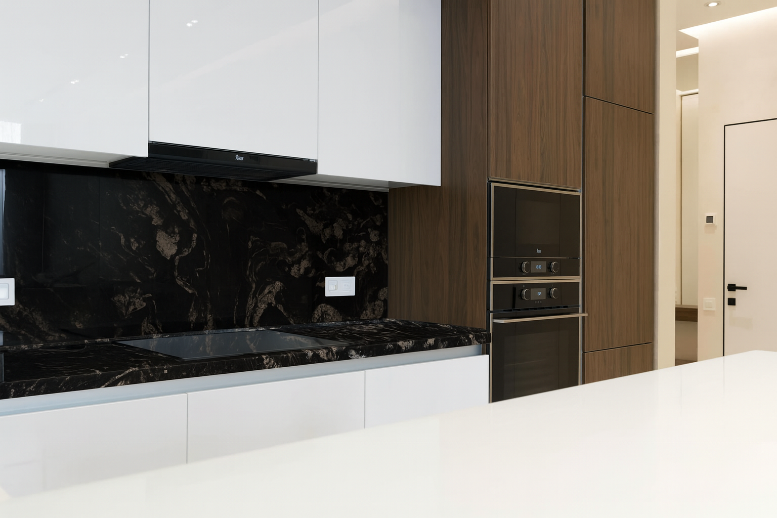Titanium Black is a breathtaking Brazilian granite forged in the depths of the earth, defined by a jet-black base and torrents of white and gold veining that surge across the surface. Available in both polished and leather finishes, this 3CM masterpiece balances strength and sophistication. Perfect for statement kitchens, luxury baths, and dramatic architectural features, each slab embodies the untamed beauty of natural energy, captured in solid stone.